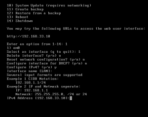- The first thing you need to do is connect to the console. ย You will see the 1-14 menu of FreeNas where we will choose the option 1 which isย Configure Network Interfaces option