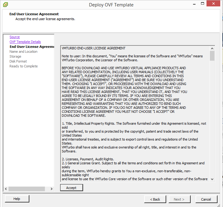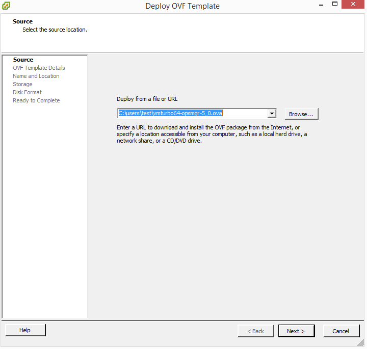 The first step is simply to point to the ova template that you downloaded when you signed up for VMTurbo.