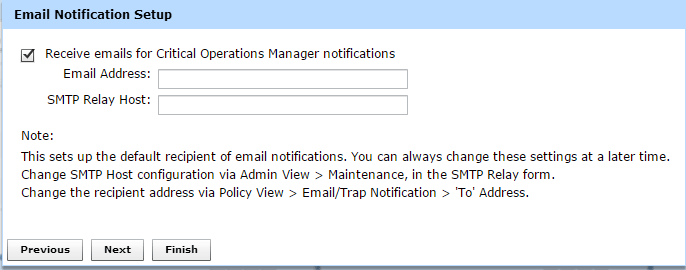 In the setup wizard there is an option presented as well to receive SMTP alerts via a relay host and address.