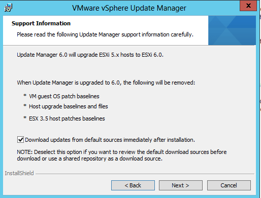 Now on to Update Manager. Â After upgrading vCenter Server itself, we have to upgrade Update Manager if it is installed.