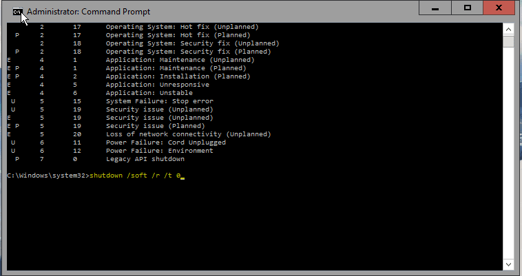 As you can see, without installing any features, I already have the /soft switch listed for the shutdown command.
