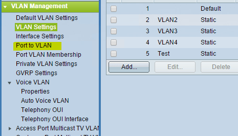 Click on the Port to VLAN option in the menu to assign ports with the web GUI.