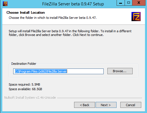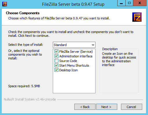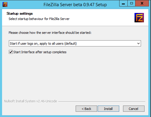 Below we have the installation of FileZilla on our Server. I am using a Windows 2012 R2 Standard box with patches, etc.