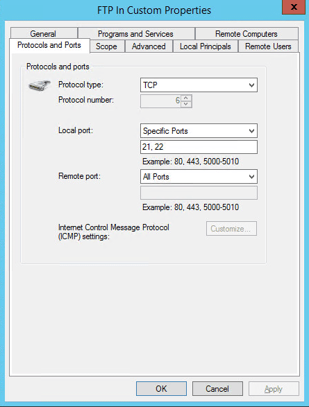 From the Windows Firewall side, we will create a couple of rules to encompass the FTP traffic and the passive ports. If you decide to turn off Windows firewall of course, you may skip the steps below.