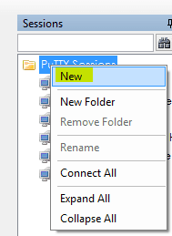 First thing to do is open SuperPutty and navigate to the right hand pane for “Putty Sessions” and choose to create aย Newย session.