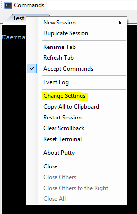 Now, once we have the new session open and connected,ย right click on the tab and chooseย Change Settings.