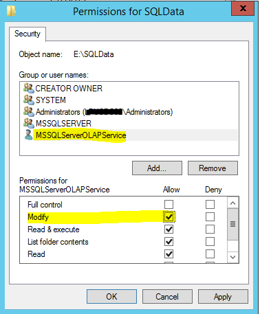 Recently in building up a SQL 2014 Standard edition VM running on Windows Server 2012 R2, I ran into a peculiar issue with the SQL install with Analysis Services relating to permissions. ย The SQL installation went all the way through the process and completed with an error. ย After reviewing the error, Analysis Services was the only component that failed to install.