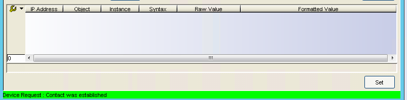 If the test is successful, you will see the Device Request: Contact was established message at the bottom of the MIB Tools window.