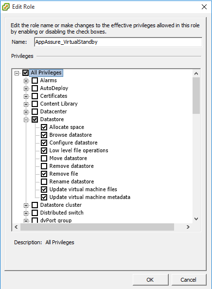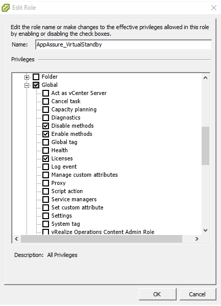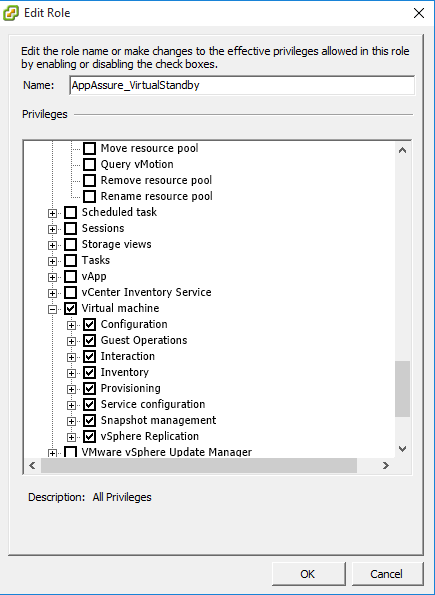 In working recently with AppAssure in exporting VMs for Virtual Standby purposes, I found a lack of documentation in AppAssure or on the net surrounding permissions required in vCenter to export VMs as Virtual Standbys.