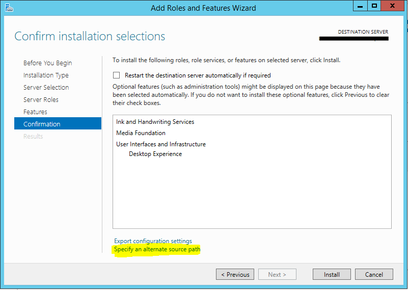 Then, when you are then installing components for a particular server, you can then specify an alternate source for the install files to load from instead of the installer downloading the source from Microsoft.