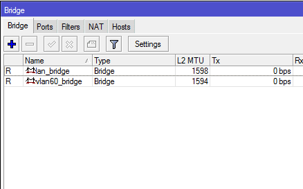 Using the single lan_bridge and no vlan60_bridge, we can bridge everything together on the single bridge – wlan1, vlan60_wlan, and ether1. Now our bridge setup is simple, one lan_bridge.