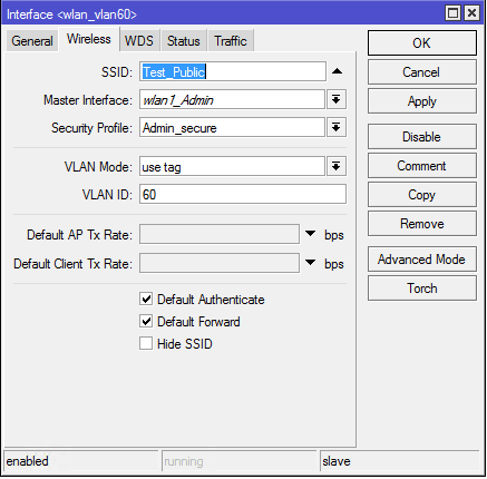 Once you get the hang of configuring Mikrotik with Winbox or even from the command line it is fairly simple to start making progress with your configs. Hopefully, the above information will point you in the right direction on getting your VLAN/virtual AP configuration hammered out.