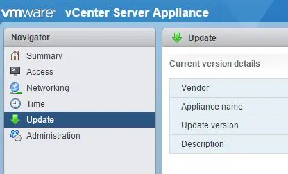 - Navigate to your https://vcsaappliance:5480 and login. ย This gains you access to the administrative side of the VCSA appliance for updates, etc. ย Click theย updateย link.