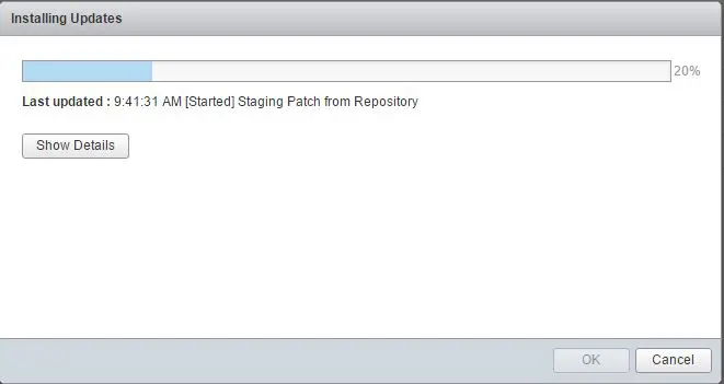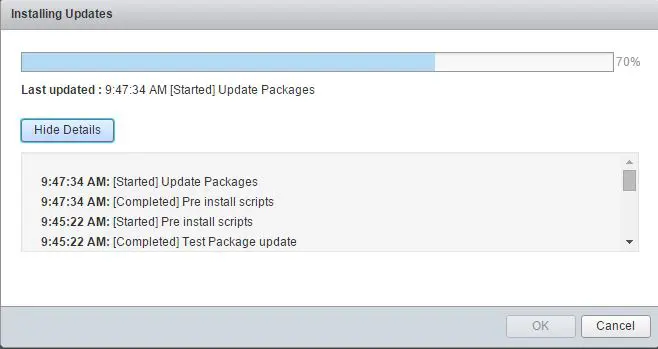 I want to note that in my environment, after leaving the browser session up and running for over an hour, the progress indicator stuck at 70% and didn’t budge. ย However, I had alerts from vROPs that the VCSA appliance went unreachable after a bit into the wizard, so I am assuming it rebooted at that point. ย After an hour, I just killed my browser session and rebooted the VCSA appliance again and it came up fine.