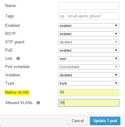 As you can see above you simply edit the “Native VLAN” field to match up with your upstream Cisco switch that is complaining about the VLAN mismatch. ย After editing and saving the configuration on the Meraki switch, I no longer received the VLAN mismatch error on the Cisco switch.