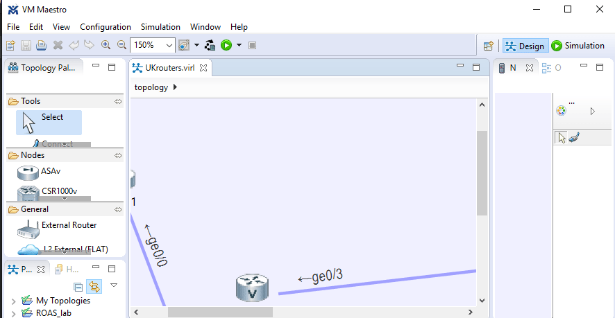 The interface in VIRL leaves a little bit to be desired.  It feels clunky and cluttered to me as well as a bit non intuitive.  There are multiple tabs and tools that can be clicked on you better hope you don’t get your view jumbled up!  Thank goodness there is a reset feature for the design view.