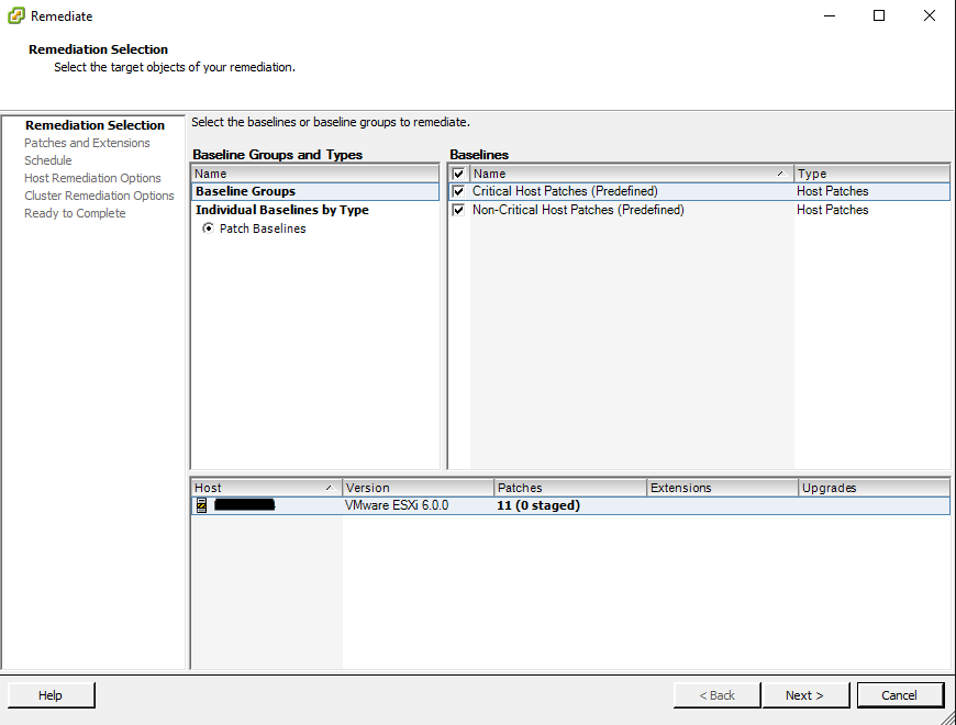 Here we can make our remediation selections, we are simply leaving the default baselines selected.