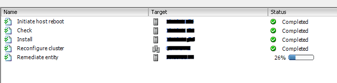 The remediation process will begin and work through the updates. ย You will finally see theย Initiate host reboot operation which means the update has completed. ย After the host reboots, you should be good to go.