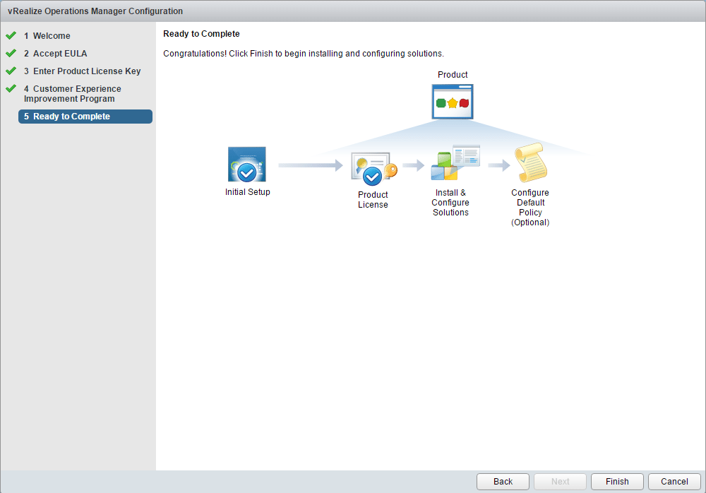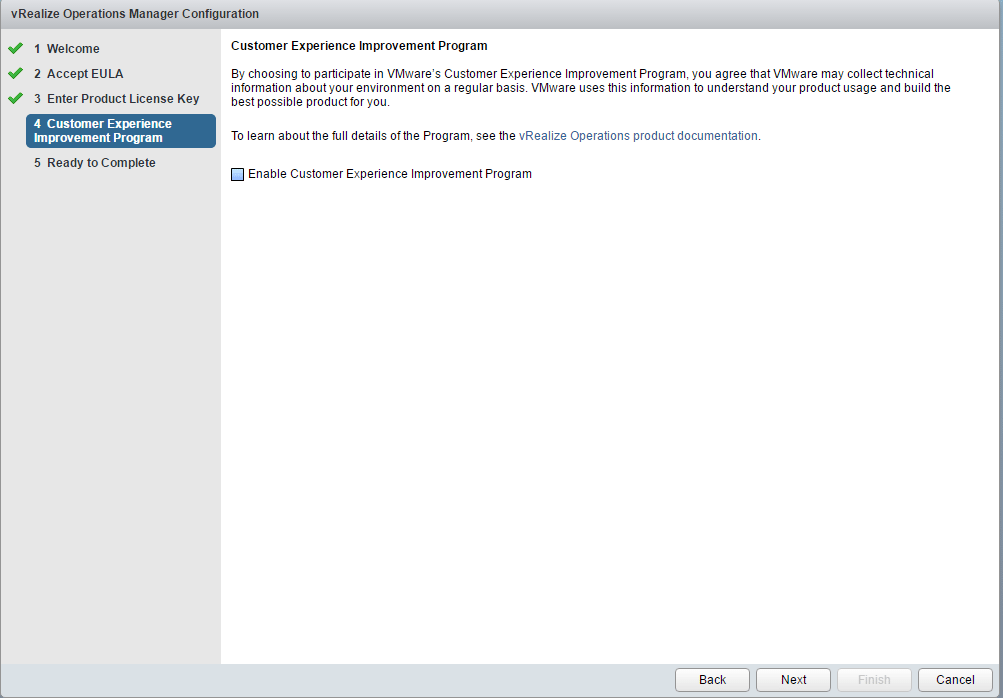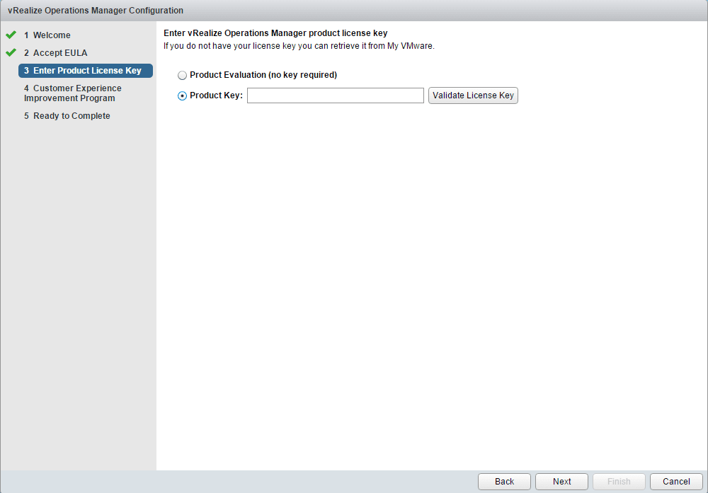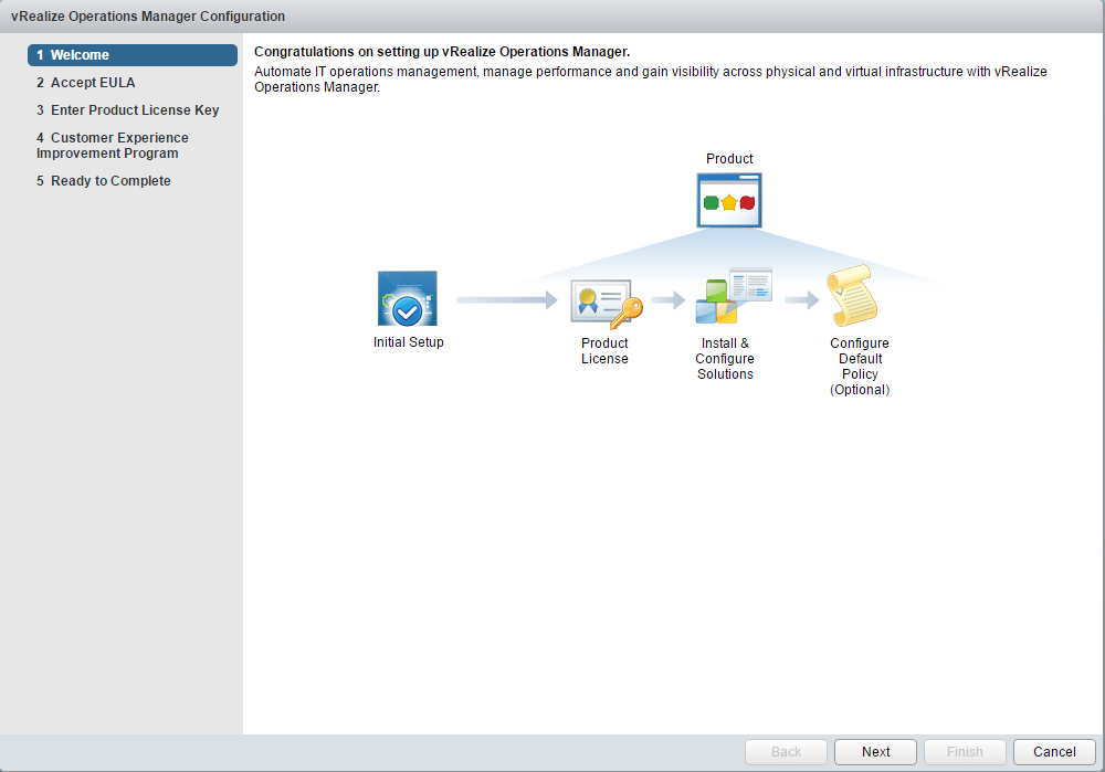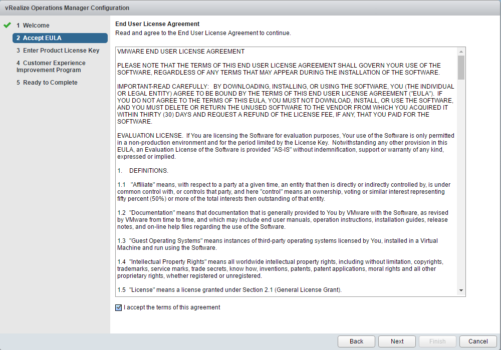 After the upgrade finished, after logging in, I was presented with the configuration of vROPs – EULA, product key, etc.