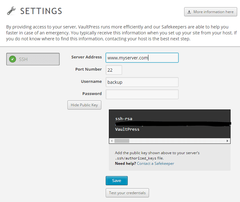For those that blog with WordPress and want to consider a good backup solution for their blog, there are a few options out there. ย However, one that is pretty straightforward and seamless is Vaultpress. ย It takes the heavy lifting out of backing up your WordPress files and database. ย However, when it comes to information on how to get it configured with a site running on an AWS EC2 instance and SSH access, the details are a bit thin. ย The following post will detail how to connect Vaultpress AWS EC2 instance via SSH that has WordPress running. ย Vaultpress can backup a site without SSH or other connectivity running just by having the plugin installed and your API key configured. ย However, for restore functionality you will need to have SSH or other protocol connectivity configured.