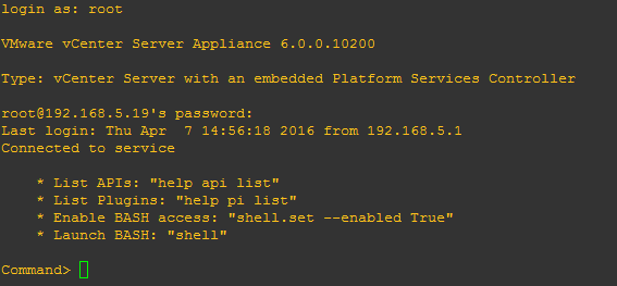- Make changes to the shell settings on your existing vCenter server