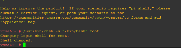 /usr/bin/chsh -s /bin/appliancesh root