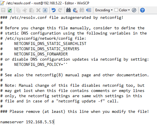 To quickly get up and running and testing, I simply added my DNS value to the resolve.conf of my HTML5 SuSe box: