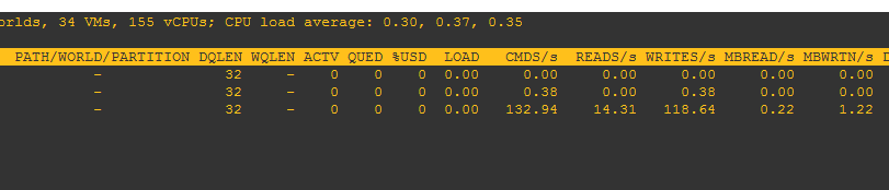 ESXTOP is a great resource for gathering quick information from the command line of your host. You can run esxtop then u and then f to select your metrics: