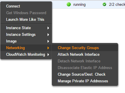 Now that we have the list of IPs that should be added to the ACL listing in our Amazon EC2 security group, let’s take a look at how to add them in. ย To see whichย security groups you are using, go to the EC2 Dashboard and then Instances. ย Right click on your EC2 instance and selectย networking >> change security groups. ย This will show you which security groups you are using by the check marks by them.