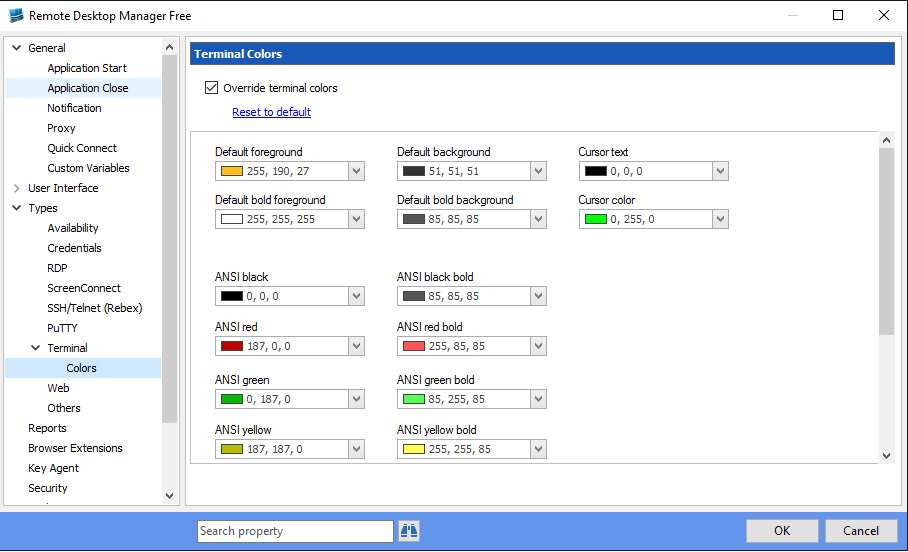 There are a couple of minor gripes that I have. ย One of which I have already mentioned above – The backup to XML from SuperPutty and then import into Remote Desktop Manager Free didn’t work for me. ย Also, in the built in SSH session, oddly enough, the colors were a bit difficult to customize – even when selecting “custom” there wasn’t an obvious way to customize using RGB colors.