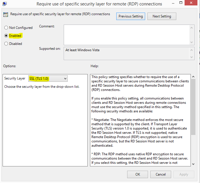 If this is the case, let’s take a look at securing RDP access to Home Lab connections that are always on. ย First things first, let’s look at securing RDP in general on a server/workstation. ย We want to set it to SSL/TLS and network level authentication to set the highest possible security right out of the gate.