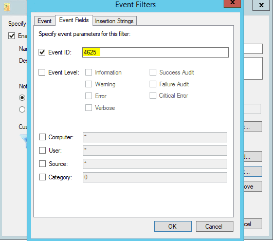 Netwrix provides a very nice little utility for free called Event Log Manager. ย You can easily setup a Log trap to trap event ID 4625’s which are failed logon events. ย The Event Log Manager will then email out in real time when it sees a certain event. ย This is really handy if you might start getting attacked and have a string of event 4625’s noting bad password attempts.