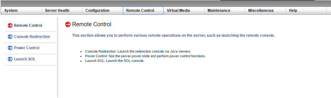 The remote control section is one of the more interesting things as most likely you will be interested to have remote access to the server if you are logging into IPMI in the first place.