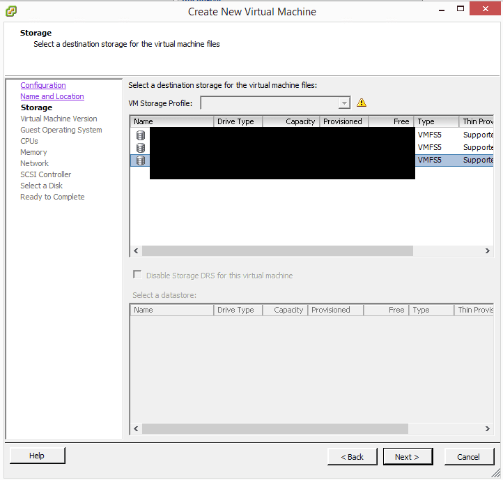 Choose your storage to house the VMDKs.