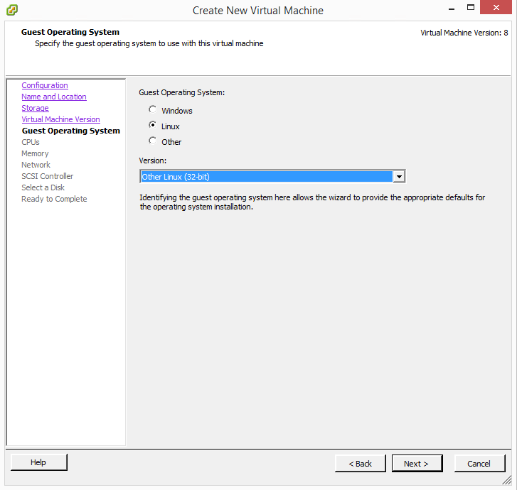 We need to chooseย Other Linux (32-bit) to house the EXOS install.