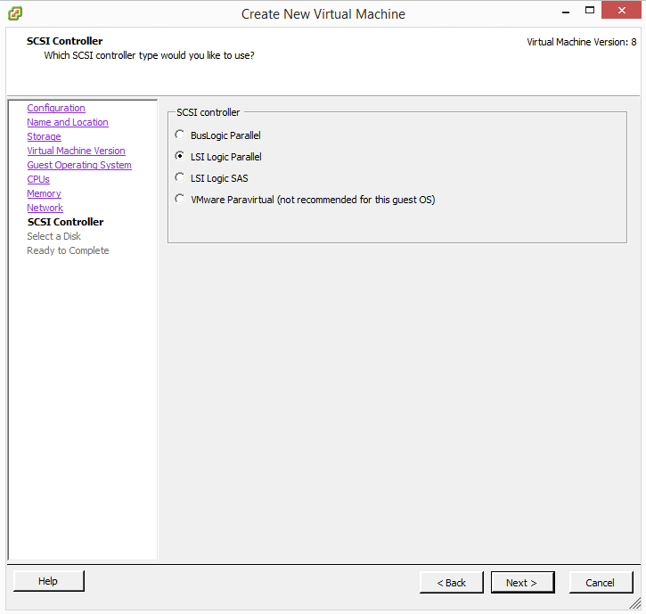 Select LSI Logic Parallelย for the SCSI controller.
