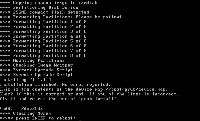 A prompt for reboot is displayed when installation is complete.