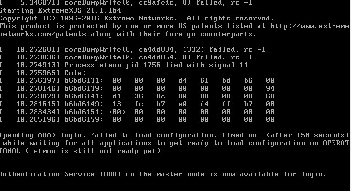 When you see theย Authentication Service (AAA) on the master node is now available for login, the switch is ready to accept logins.