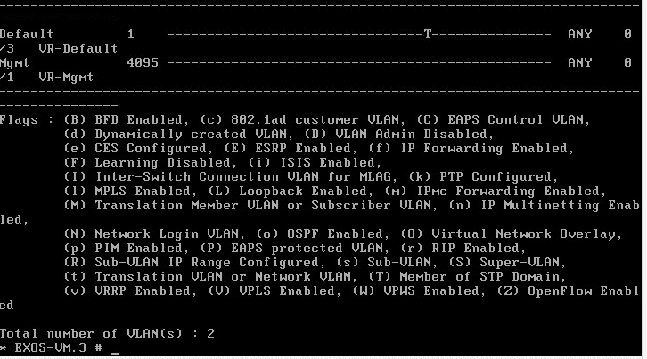 The virtual Extreme EXOS install and configuration is fairly straightforward. ย Having the appliance is a great learning and labbing tool to be able to setup different scenarios or to test configurations/commands, etc. ย There are even some good threads out there on how to enable VIRL support for this EXOS image. ย There are plenty of things that you will find useful about the image. ย I hope more vendors get on board with releasing virtual images of their switch and other hardware interfaces.