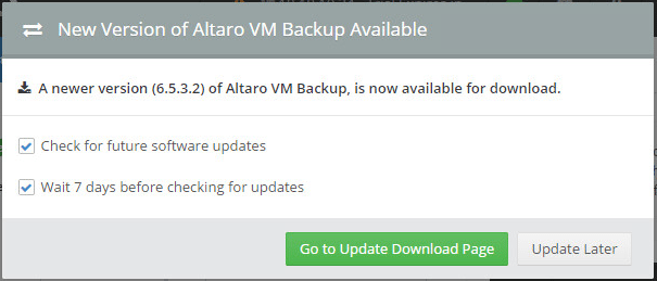 If you are already running Altaro Backup and running a version prior to v6.5, you can getย to the update by clicking the little “cogs” settings icon in the upper right hand corner of the console. ย This simply takes you to a web link to obtain the update. ย If you want to get there directly, go here.