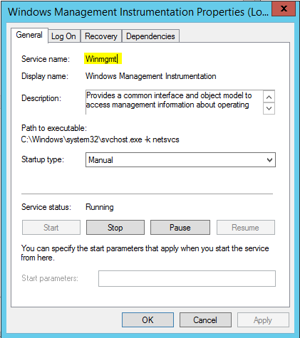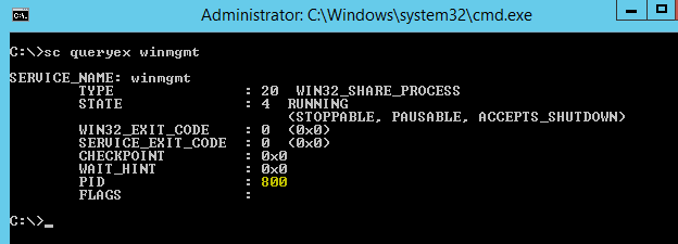 However, there is a command line tool that can help to identify the PID of the service in question.  The first piece of information you need is the service name.  Let’s look as an example at a common service – Windows Management Instrumentation.  Below we see the service name is Winmgmt which is what we will use to query.