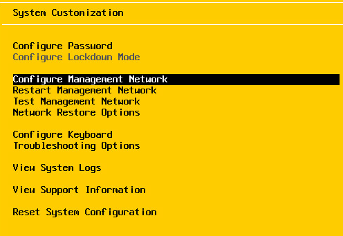 As you can see below the “Configure Management Network” as well as other network options are greyed out.