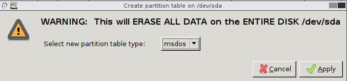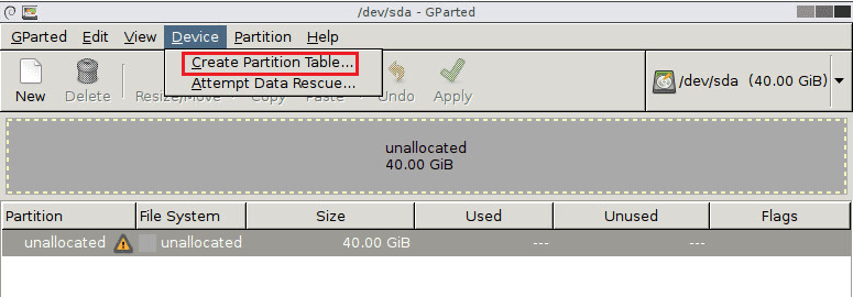 Under the Device menu, choose to Create Parition Table…