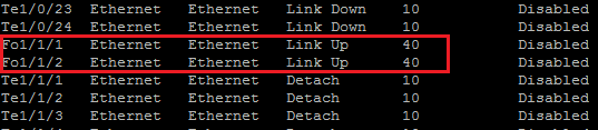 It will show your potential stack ports.  If you use the QSFP 40 gig ports, these show up as Fo1/1/1 and Fo1/1/2.  Notice below after issuing the show switch stack-ports command, scrolling down to the “Fo” ports, you see they are “Link Up” but notice the type is Ethernet.  So we need to change this so the switches know we are wanting to designate the ports as stacking ports instead of Ethernet.