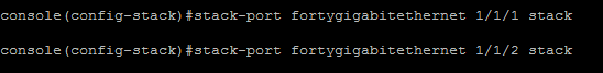 stack-port fortygigabitethernet 1/1/1 stack stack-port fortygigabitethernet 1/1/2 stack