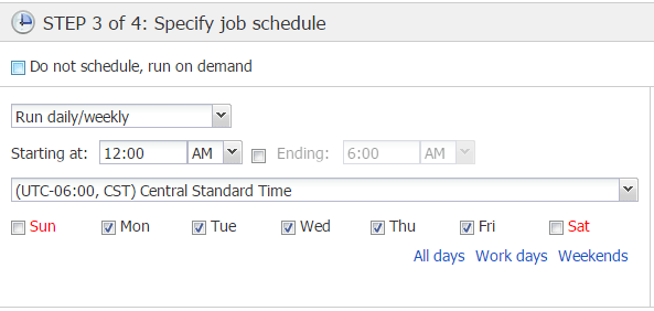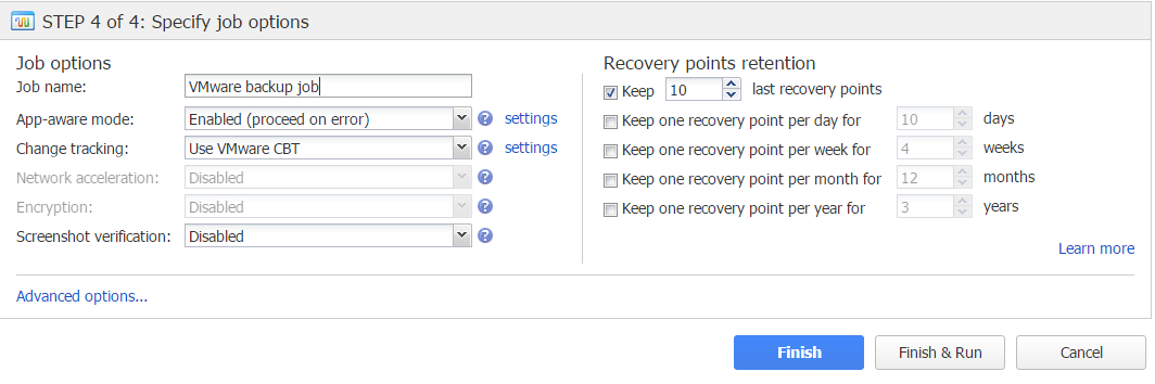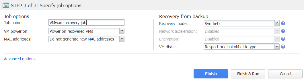 Finally, we specify job options such as recovery mode, MAC addresses, etc.