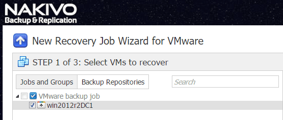 The restore process is equally as painless. ย There are (3) steps to restoring a VM. ย First you select the VMs to recover from the backup job.