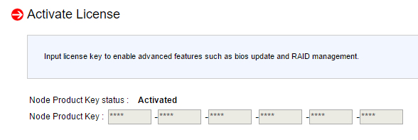 Once you obtain your BIOS update key either through a reseller or the EVAL link, you should see that the Node Product Key status shows Activated.