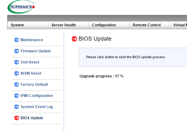 There is one caveat to using SUM as when you attempt to remotely update the BIOS, when you attempt to update the BIOS, you will be prompted for a license key to activate the SUM component in the IPMI interface.