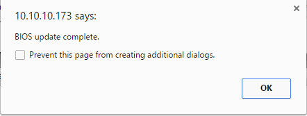 After you click Cancel if choosing a later maintenance period you will then get the message stating the BIOS Update complete and you can simply click OK.